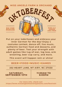 Throughout the year we host festivals & other events at Miss Angels Farm & Orchard LLC! Check out our upcoming events below.